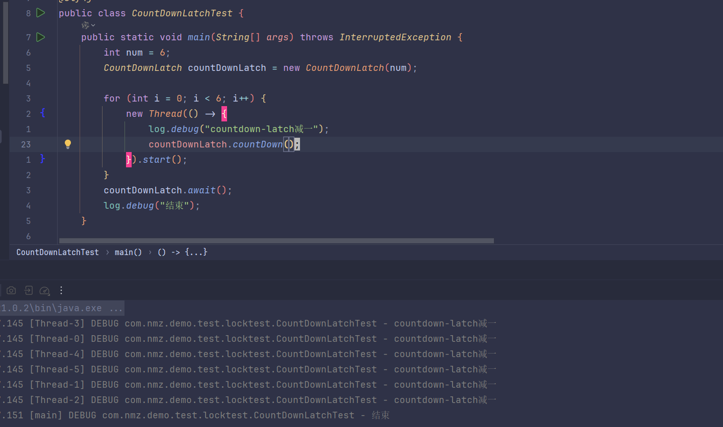 CountDownLatch countDownLatch = new CountDownLatch(num);