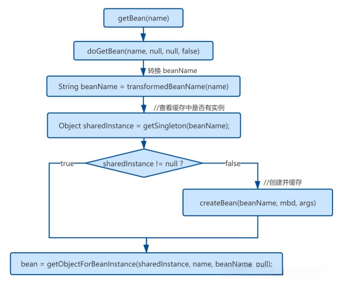他是通过一个 getSingleton() 方法去获取所需要的 Bean 的。