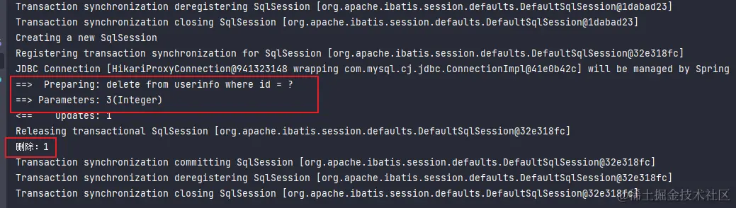 System.out.println("删除:" + result);