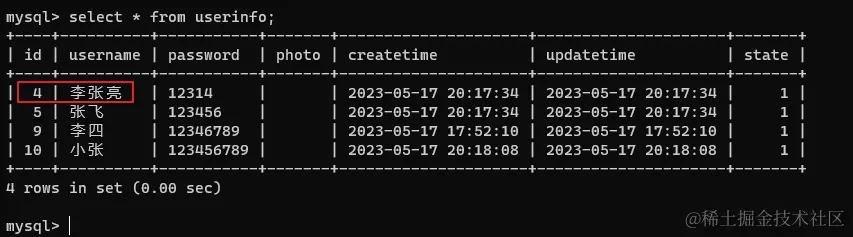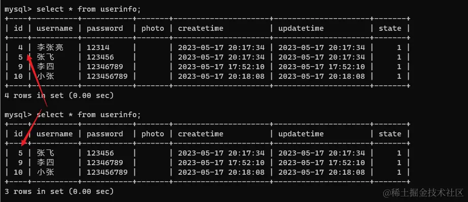删除 id=4: