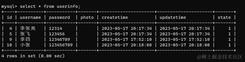 //给用户表添加用户信息