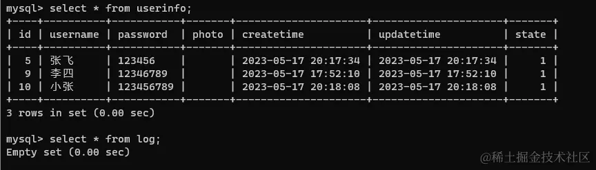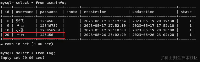 log 表为空: