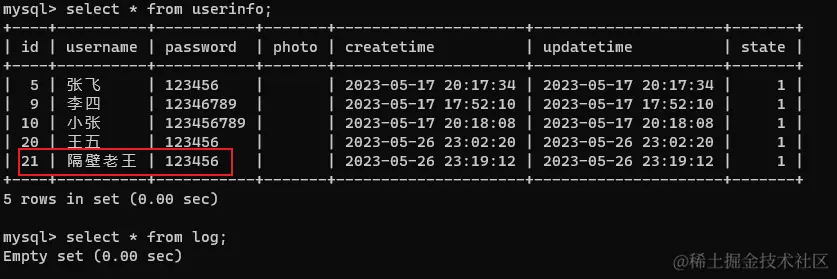 可以看到,两个表都是添加成功的,但是LogService中的add方法回滚了,重点看其它方法回滚了没有: