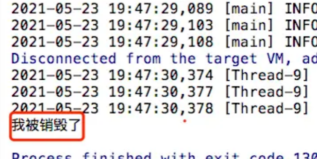 }当结束main方法时,控制台打印的结果如下