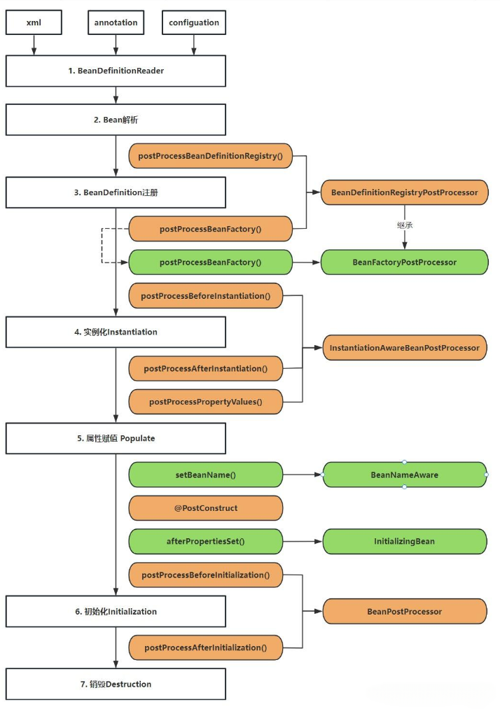 BeanDefinition之后就可以进行创建对象了,这整个过程被称为 bean 的生命周期,也就是从实例化到销毁的过程;